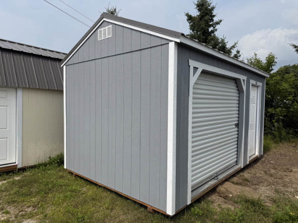 A341 Utility 10×16 Steely Grey with White Trim and Charcoal Roof – no permit required SOLD