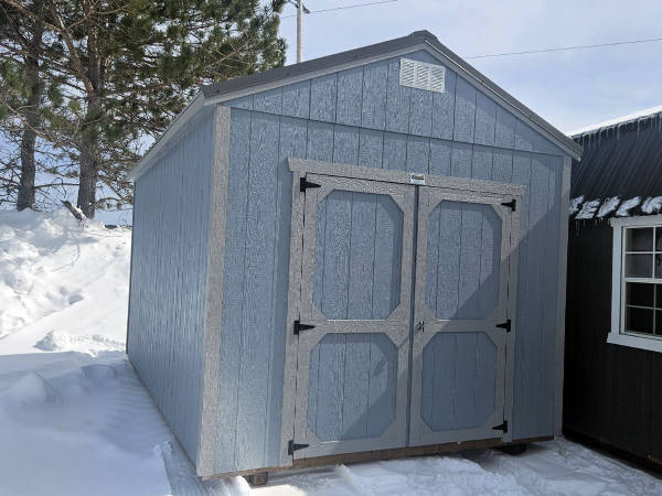 B163 Utility Shed 10×16 Steely Grey with Pewter Cast Trim and Charcoal roof – no permit required
