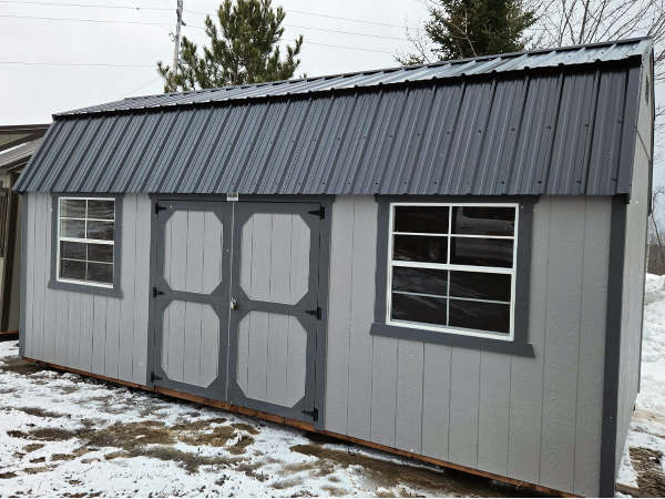B221 Lofted Barn 10×20 Pewter Cast Grey with Peppercorn Grey Trim and Black Roof – a permit is easy